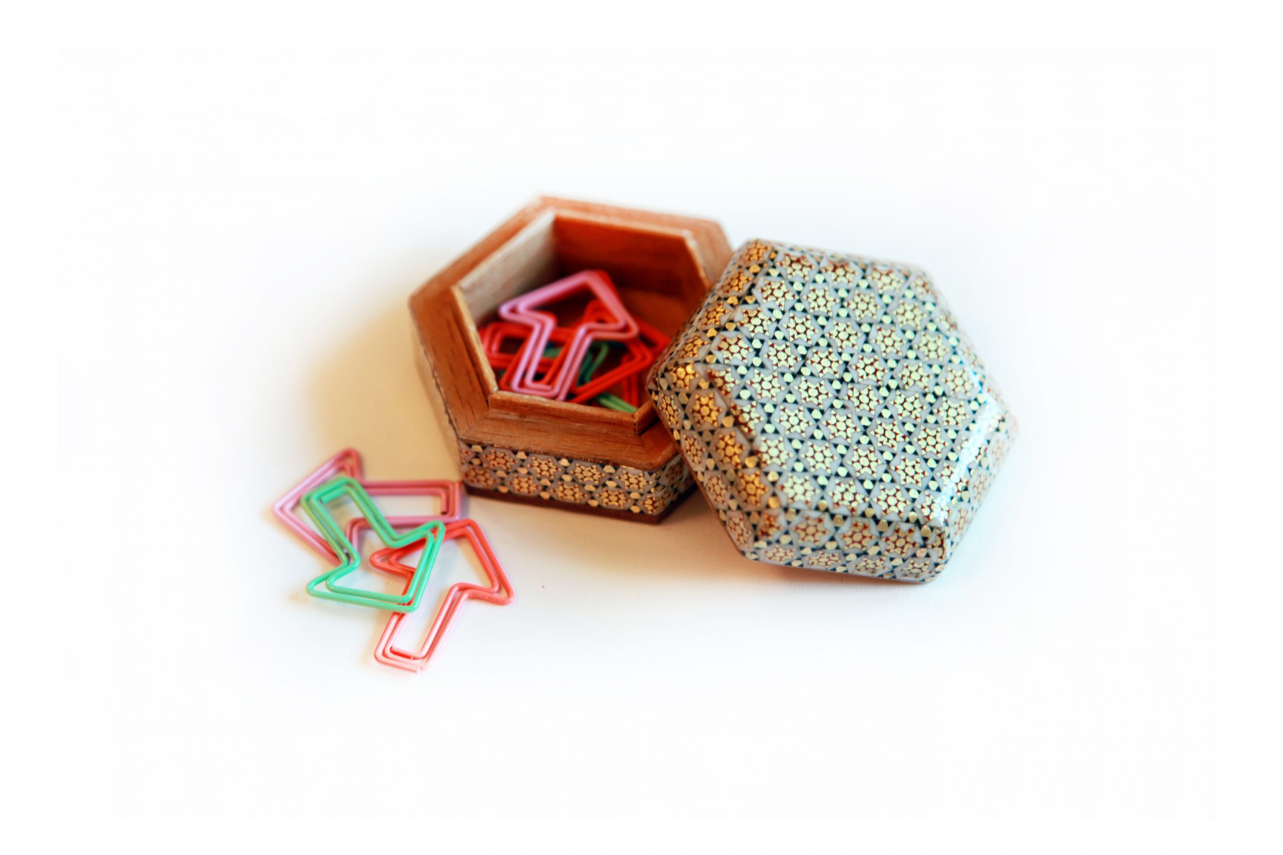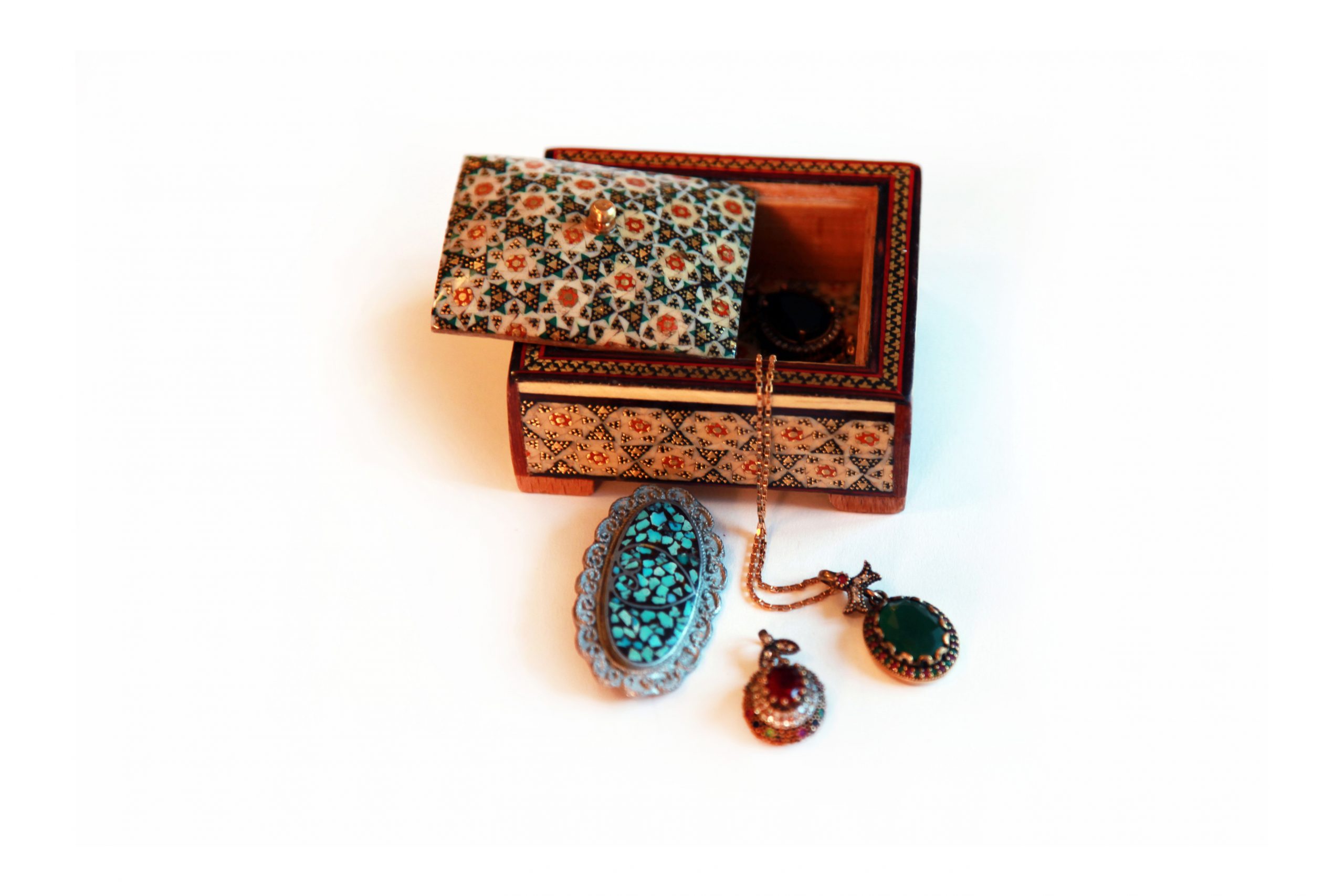 Khātam är en persisk teknik för inläggning vars historia sträcker sig hundratals år tillbaka. Det anses vara en av de mest vackra och originella grenarna av iranskt hantverk och dess konstruktion kräver precision, tid och tålamod. Khātam är en form av marketeri där man dekorerar ytan på trähantverk, exempelvis askar. Med noggrant skurna bitar av trä, ben och metall, bildar man invecklade geometriska mönster. Här hittar ni vårat utbud av traditionella askar i olika storlekar, former och mönster.